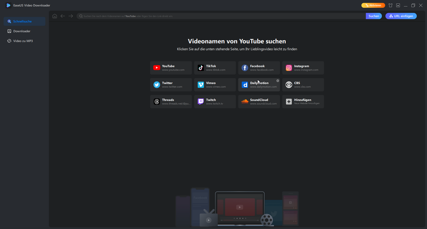 Mit dem EaseUS Video Downloader können Sie ganz einfach unbegrenzt Videos und Audiodateien herunterladen. Laden Sie mehrere Dateien auf einmal herunter und wählen Sie zwischen HD-, 4K- oder 8K-Qualität. Speichern Sie mühelos Videos und Audiodateien aus Playlisten und Kanälen. Holen Sie mit diesem professionellen und effizienten Tool das Beste aus Ihren Medien heraus.