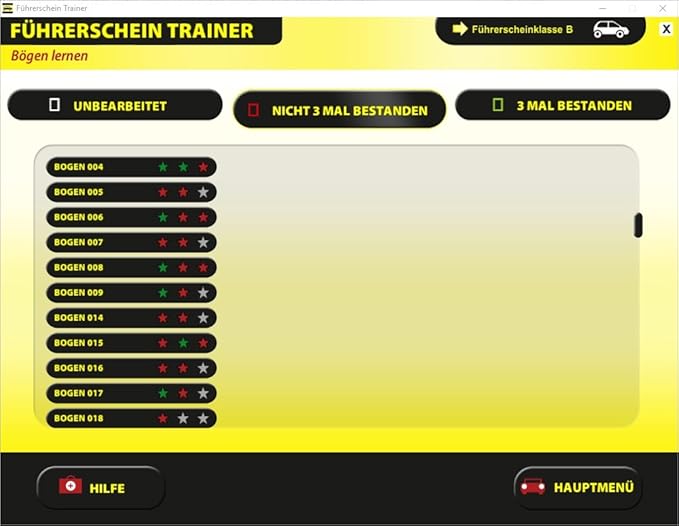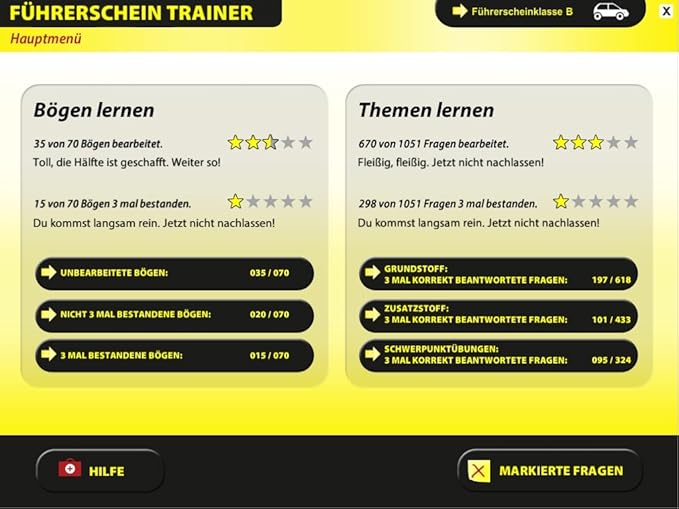 Mit dem Führerschein Trainer 2025 sind Sie bestens vorbereitet für Ihre theoretische Fahrprüfung. Nutzen Sie die offizielle, aktuelle Fragebogen und üben Sie bequem am Computer zu Hause. Oder lassen Sie sich unter realistischen Bedingungen testen, denn die Software entspricht der originalen Prüfschnittstelle von TÜV und DEKRA. Wählen Sie gezielt bestimmte Themenbereiche aus, um daran zu arbeiten. Dank der statistischen Auswertungen können Sie Ihren Lernerfolg schnell überprüfen. Highlights: Für Klassen A, A1, A2, AM, B, C, C1, CE, D, D1, L, T und Moped.