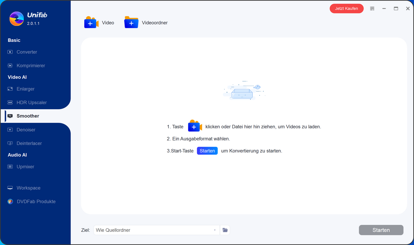 Wir stellen UniFab Smoother AI vor, mit revolutionärer AI-Frame-Interpolation und einer benutzerfreundlichen Oberfläche. Mit vielseitiger Videoanpassung, Hardwarebeschleunigung und hoher Kompatibilität erzielen Sie mühelos flüssigere und qualitativ hochwertigere Videos. Erleben Sie die Zukunft der Videobearbeitung mit UniFab Smoother AI.